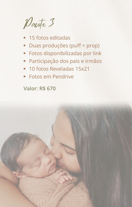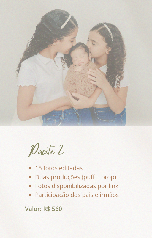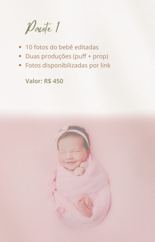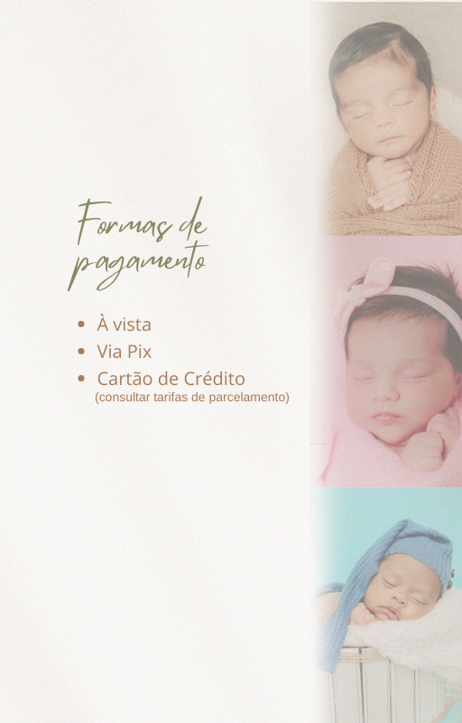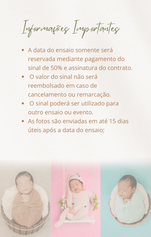 Agendar o ensaio com no mínimo 15 dias de antecedência ou assim que o bebê nascer.